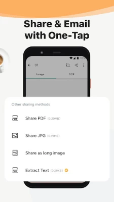 Vienkāršojiet dokumentu koplietošanu. Varat ērti nosūtīt digitalizētos failus kā e-pasta pielikumus, izveidot drošas saites vai augšupielādēt tos uz populāriem mākoņpakalpojumiem, piemēram, Dropbox, Google Drive, Evernote un OneDrive. Oken Scanner ļauj arī drukāt līgumus un rēķinus tieši no lietotnes. Jūsu privātums ir prioritāte: visi digitalizētie vai eksportētie dokumenti tiek glabāti lokāli jūsu ierīcē, nodrošinot, ka neviens, izņemot jūs, tiem nevar piekļūt. Jūsu dati – tikai jūsu.
