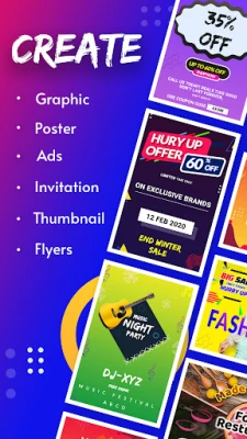 Lietotne "Poster Maker - Flyer Maker App" ir izstrādāta, lai apmierinātu visas jūsu vizuālā satura vajadzības. Tā ir ideāli piemērota biznesa reklāmas baneru, pasākumu skrejlapu, sociālo mediju ziņu, dzimšanas dienas ielūgumu, vizītkaršu un citiem mārketinga materiālu veidošanai. Neatkarīgi no tā, vai organizējat ballīti, klubu pasākumu, mūzikas koncertu, skolas aktivitāti vai veidojat reklāmu fitnesa centram, "Poster Maker - Flyer Maker App" nodrošina nepieciešamos rīkus, lai radītu profesionālus un piesaistošus vizuālos materiālus. Kad jūsu dizains ir pabeigts, dalieties ar to tieši sociālajos medijos, lai uzreiz sasniegtu savu auditoriju. Atklājiet neierobežotas radošuma iespējas ar šo universālo dizaina rīku.